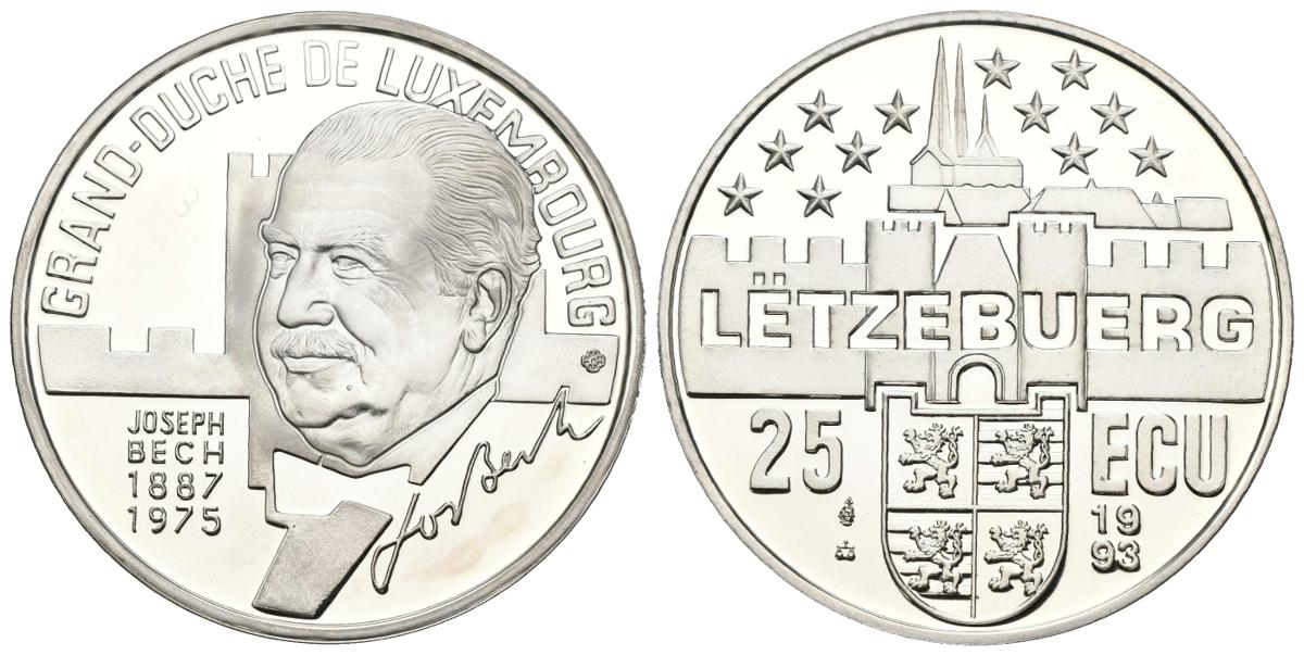 LUXEMBURGO. 25 Ecu (Ar. 22,93g/37mm). 1993. Joseph Bech 1887-1975. PROOF. Tirada de 20.000 unidades. Incluye estuche y certificado de autenticidad.