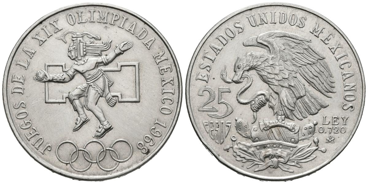 MEXICO. 25 Pesos. (Ar. 22,50g/38mm). 1968. Juegos Olímpicos MEXICO´68. (Km#468). EBC+.