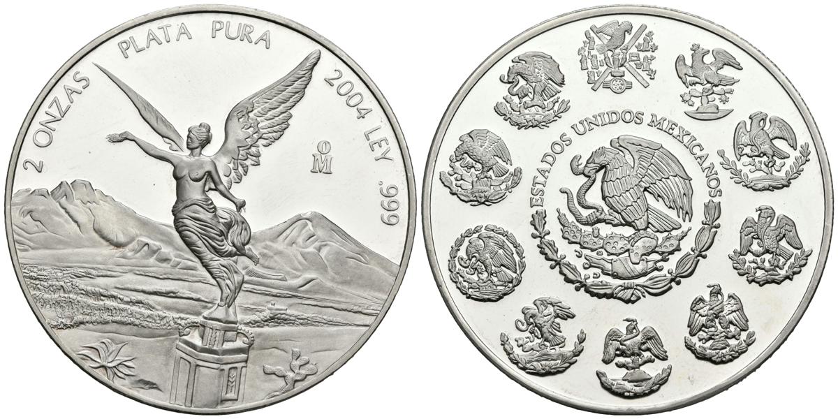 MEXICO. 2 Onzas de plata pura. (Ar. 62,22g/47mm). 2004. PROOF. Banco de México. PROOF.