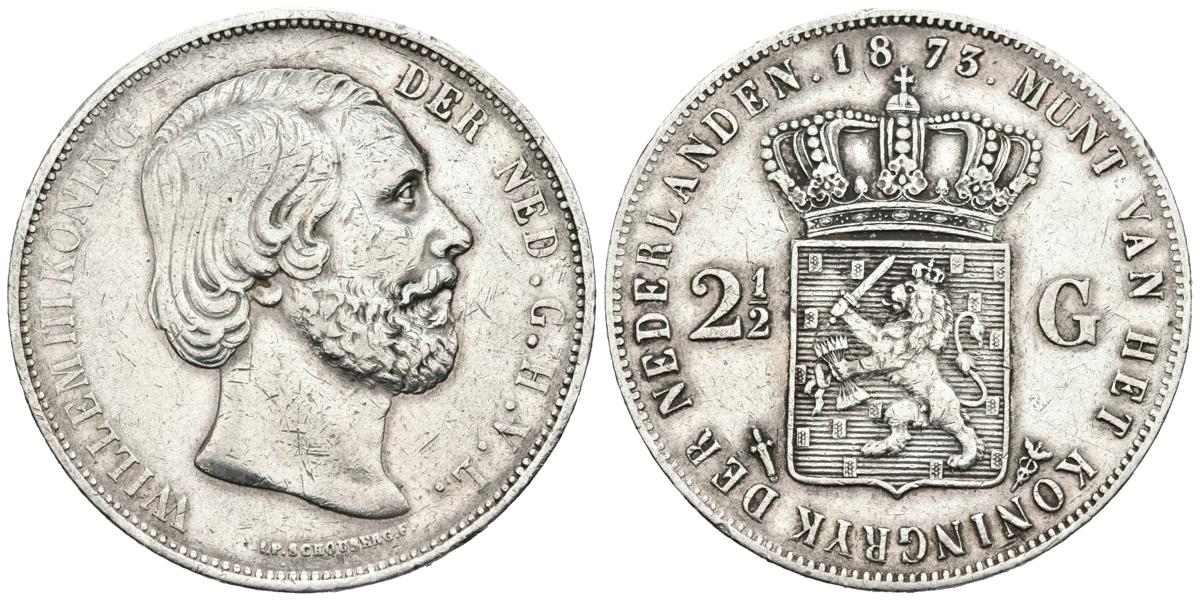 PAISES BAJOS. 2 1/2 Gulden. (Ar. 24.92g/38mm). 1873. Willem II. (Km#82). MBC.