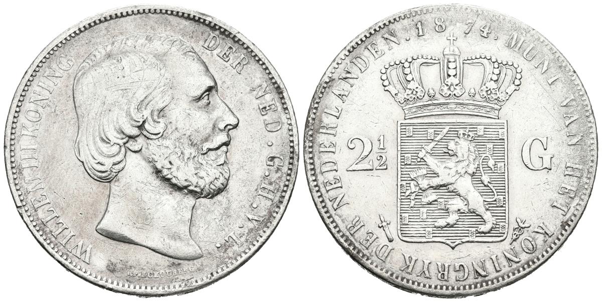 PAISES BAJOS. 2 1/2 Gulden. (Ar. 24.76g/38mm). 1874. Willem II. (Km#82). MBC