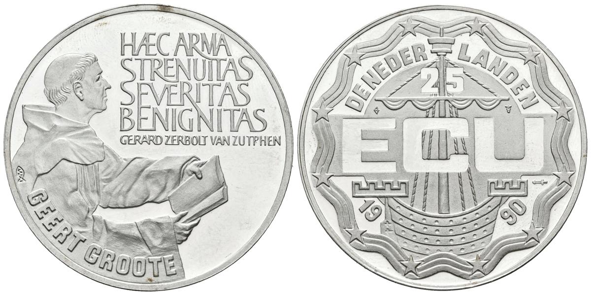 PAISES BAJOS. 25 Ecu. (Ar. 25,20g/38mm). 1990. Geer Groote. (Km#UC201). PROOF.