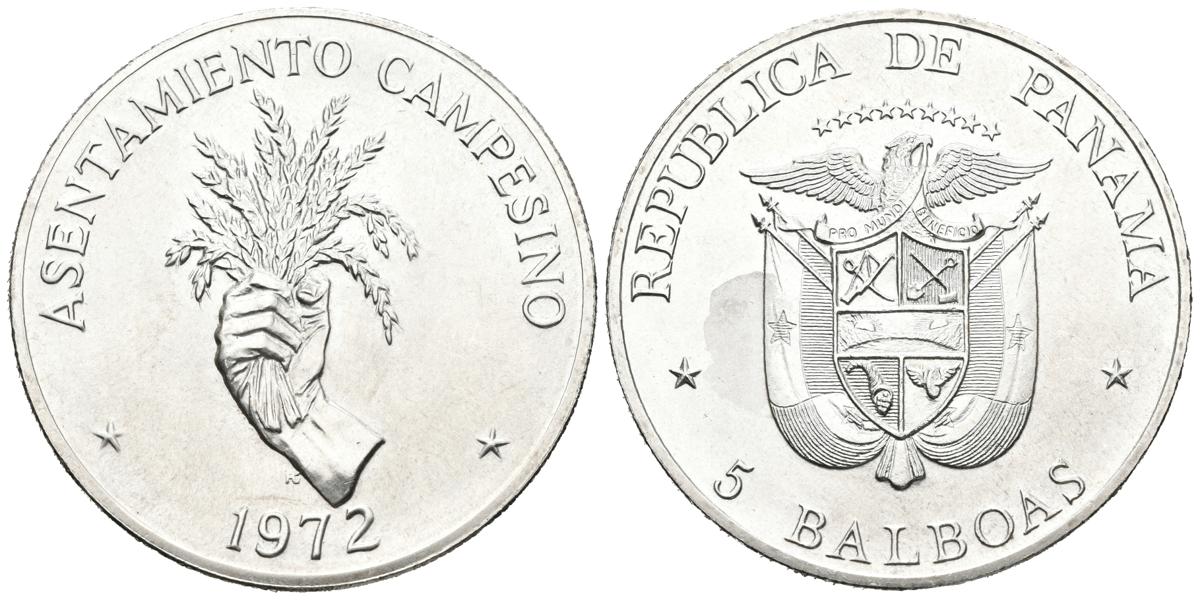 PANAMA. 5 Balboas. (Ar. 35,30g/39mm). 1972. FAO. (Km#30). SC.