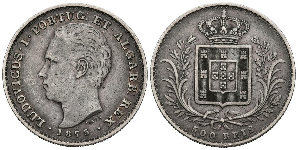 PORTUGAL. 500 Reis. (Ar. 12,45g/30mm). 1875. D. Luis I (1861-1889). (Gomes 12.11). MBC.