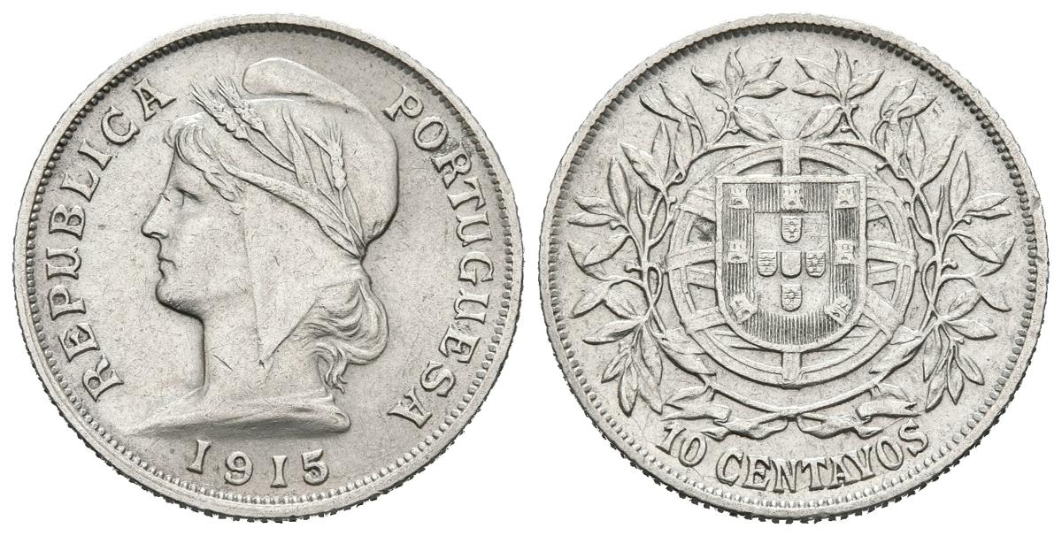 PORTUGAL. 10 Centavos. (Ar. 2,52g/19mm). 1915. Liberty Head. (Km#563). EBC-.