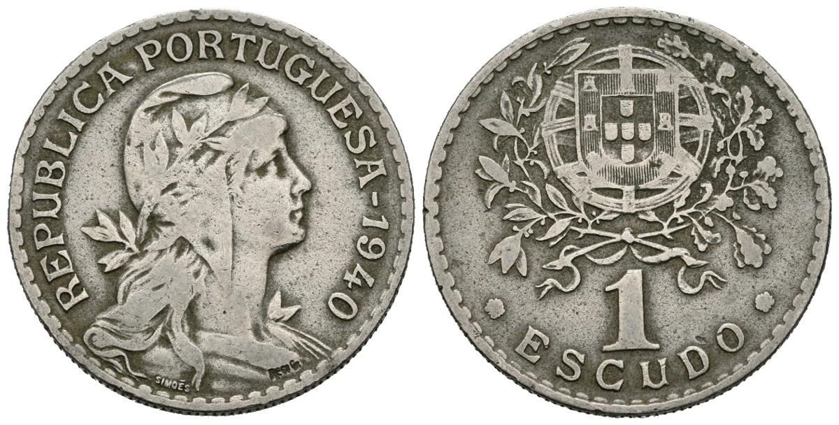 PORTUGAL. 1 Escudo. (Ar. 7,84g/27mm). 1940. (Km#578). MBC-. Escasa.