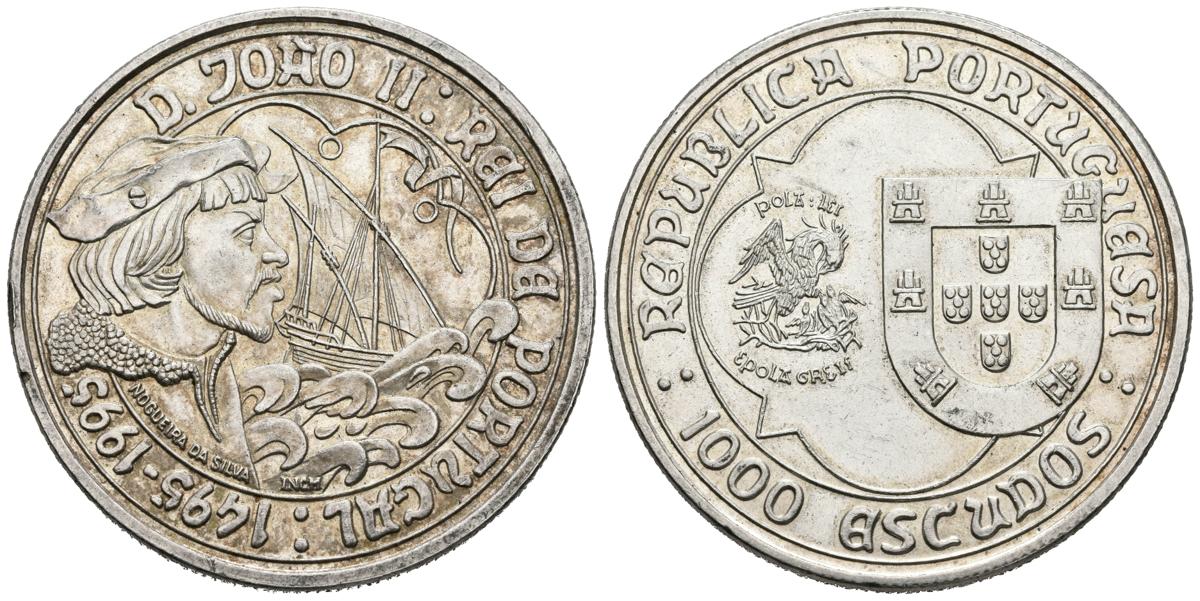 PORTUGAL. 1000 Escudos. (Ar. 27,99g/40mm). 1995. 500 Aniversario del Reinado de Joao II. (Km#685). EBC+
