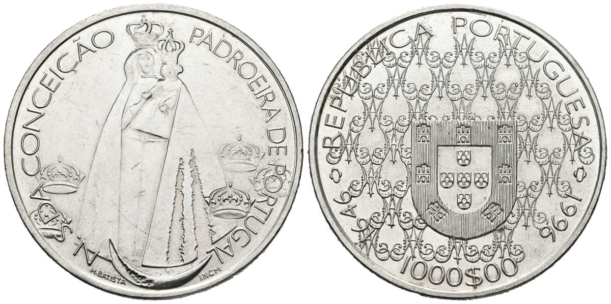 PORTUGAL. 1000 Escudos. (Ar. 28,00g/40mm). 1996. N. S. De Conceiçao. (Km#696). EBC+.