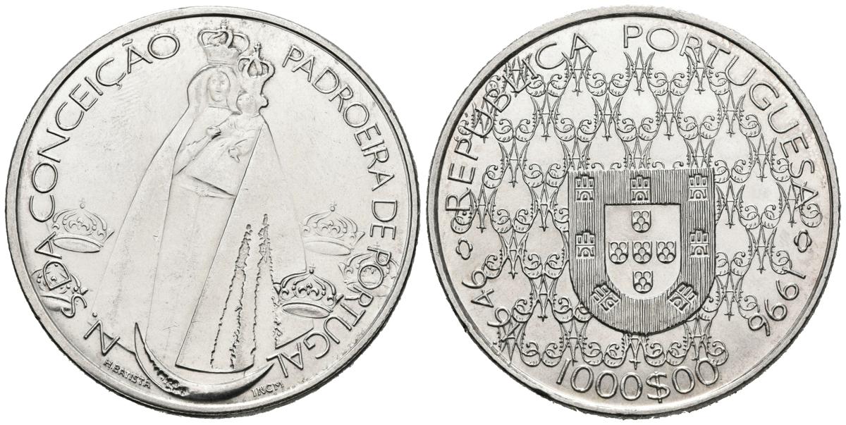 PORTUGAL. 1000 Escudos. (Ar. 27,88g/40mm). 1996. N. S. De Conceiçao. (Km#696). SC.