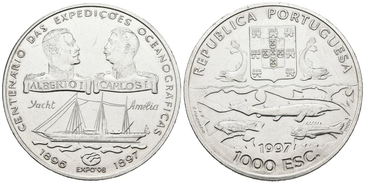 PORTUGAL. 1000 Escudos. (Ar. 28,00g/40mm). 1997. Centenario de las Expediciones Oceanográficas. (Km#695). SC.