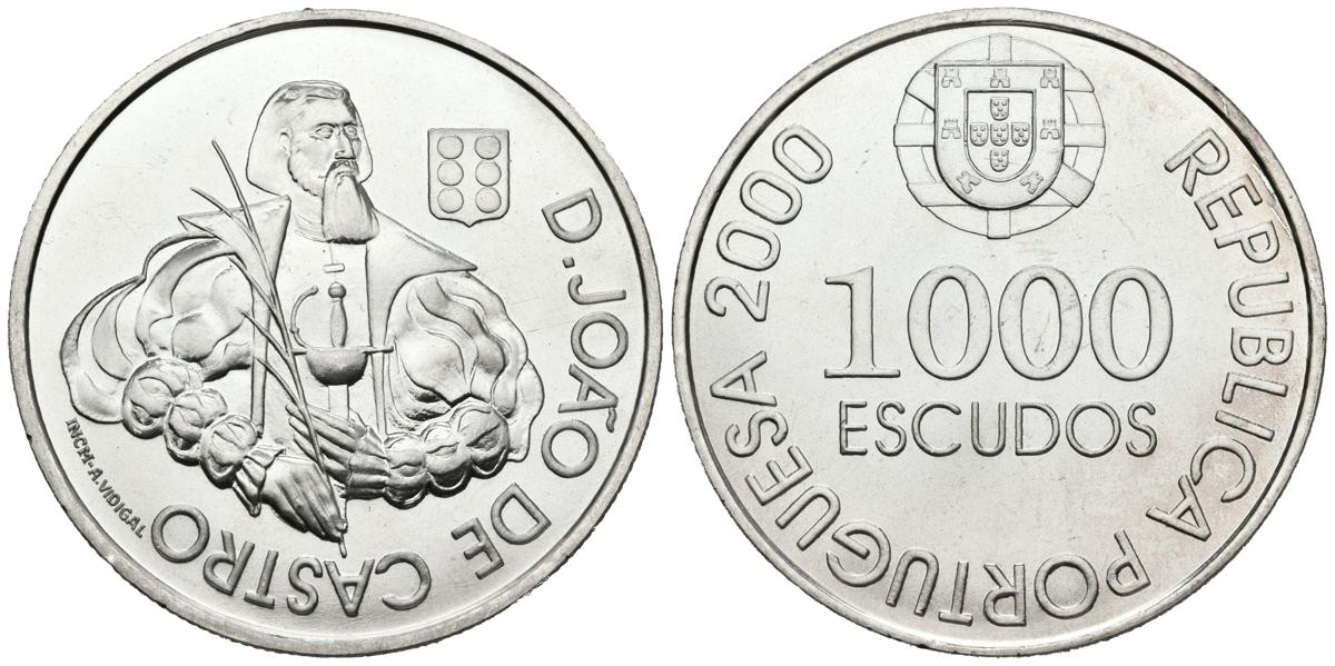 PORTUGAL. 1000 Escudos. (Ar. 27,09g/40mm). 2000. D. Joao de Castro. (Km#732). PROOF.