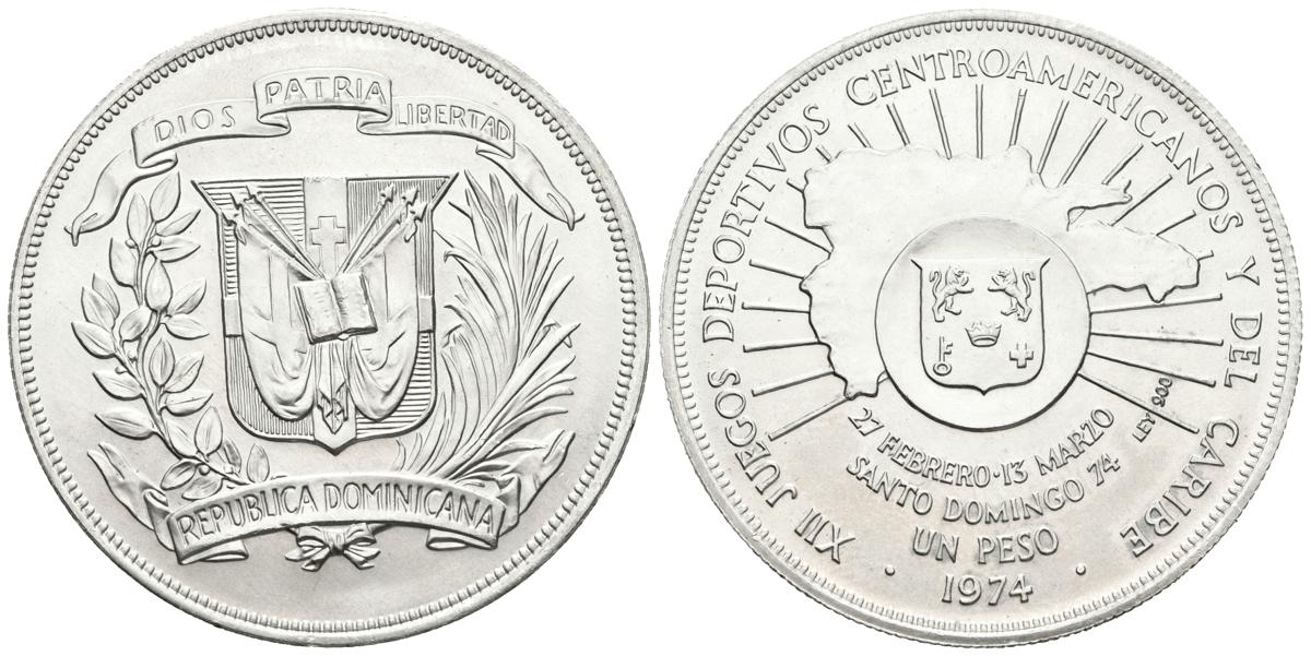 REPUBLICA DOMINICANA. 1 Peso. (Ar. 26,93g/38mm). 1974. Juegos Deportivos Centroamericanos y del Caribe. (Km#35). SC.
