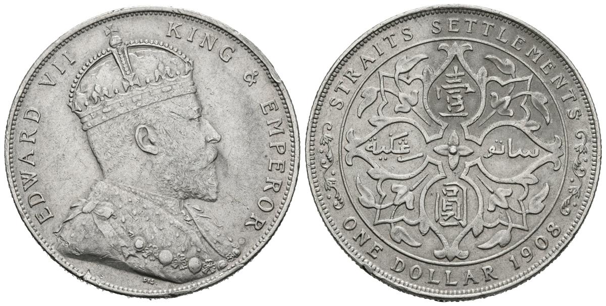 STRAITS SETTLEMENTS (Commonwealth). 1 Dollar. (Ar. 20,11g/34mm). 1908. Eduardo VII. (Km#26). MBC/MBC+.