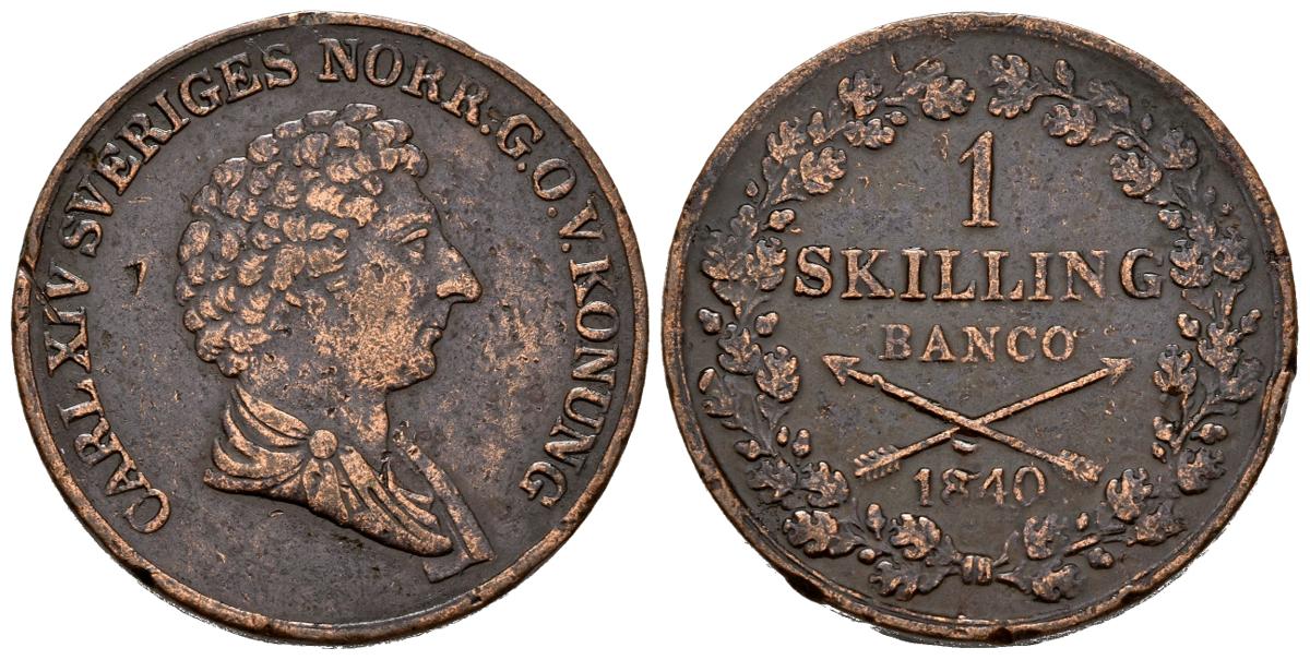 SUECIA. 1 Skilling. (Cu. 11,20/27mm). 1840. (Km#642). Busto de Carlos XIV. MBC+. Barnizado.