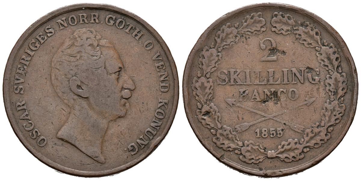 SUECIA. 1 Skilling. (Cu. 18,57/33mm). 1855. (Km#664). MBC.
