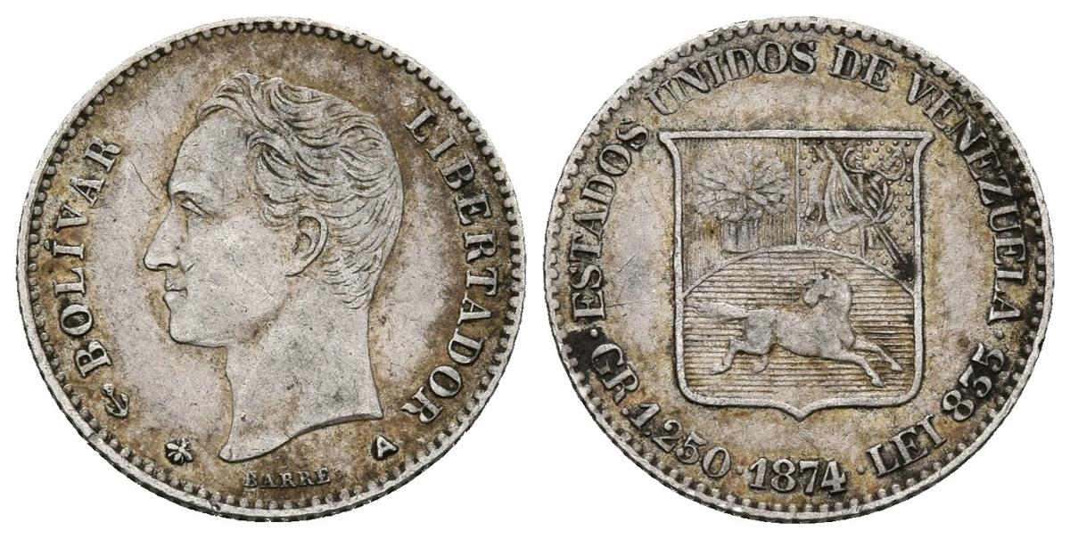 ESTADOS UNIDOS DE VENEZUELA. 5 Centavos. (Ar. 1,26g/15mm). 1874. París. (Km#Y12.2). MBC.