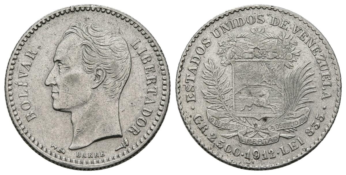 ESTADOS UNIDOS DE VENEZUELA. 1/2 Bolívar. (Ar. 2,47/18mm). 1912. París. (Km#Y21). EBC-.