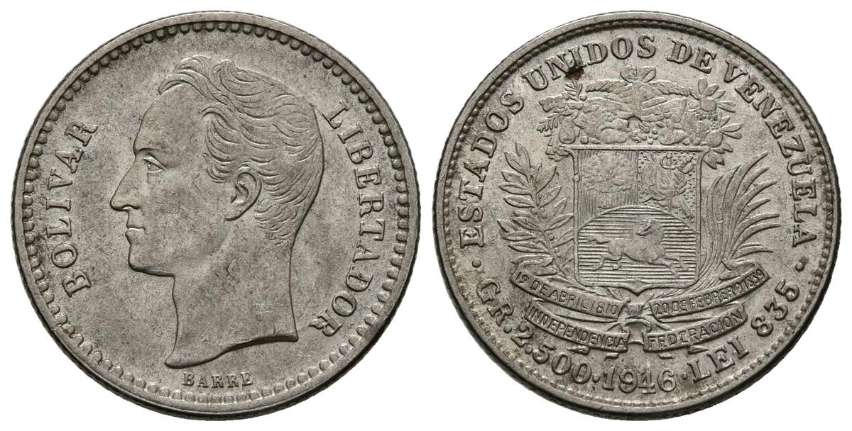 ESTADOS UNIDOS DE VENEZUELA. 1/2 Bolívar. (Ar. 2,52g/18mm). 1946. Philadelphia. (Km#Y21). EBC.