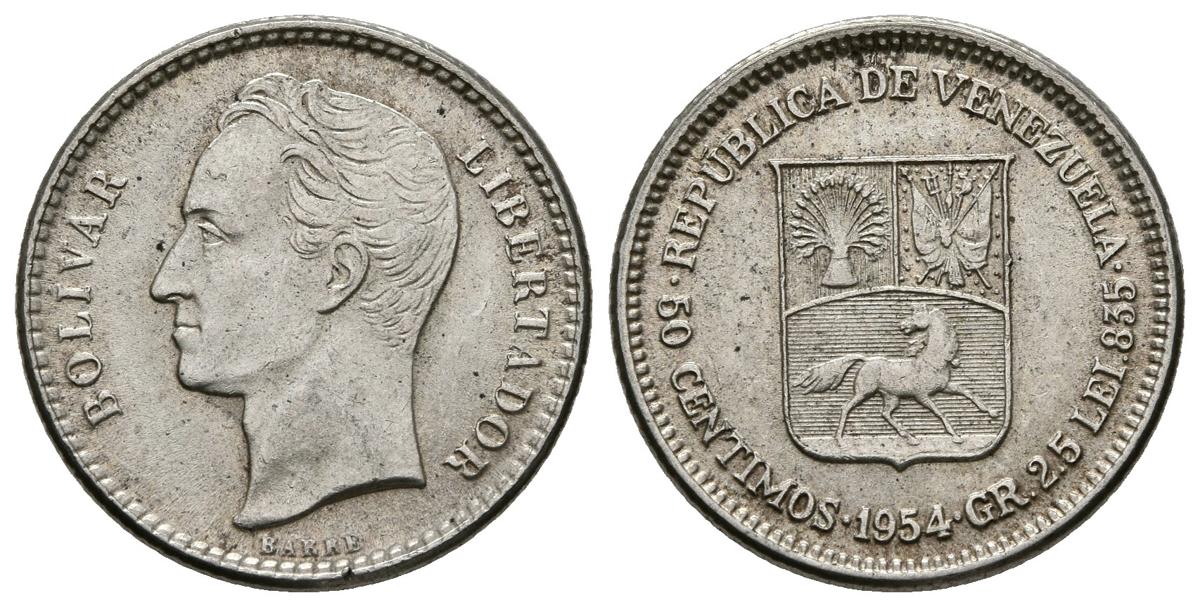 ESTADOS UNIDOS DE VENEZUELA. 1/2 Bolívar. (Ar. 2,55g/18mm). 1954. Philadelphia. (Km#Y36). EBC-.
