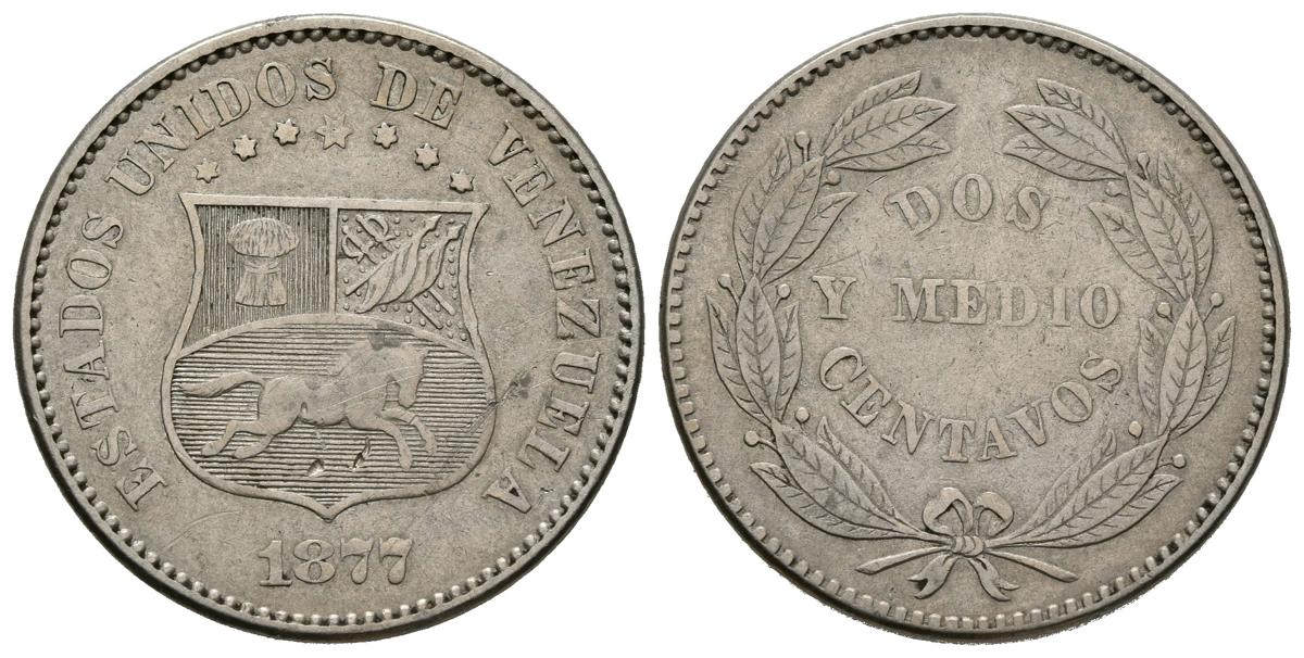 ESTADOS UNIDOS DE VENEZUELA. 2 1/2 Centavos (CuNi. 4,87g/23mm). 1877. Philadelphia. (Km#Y26). MBC.