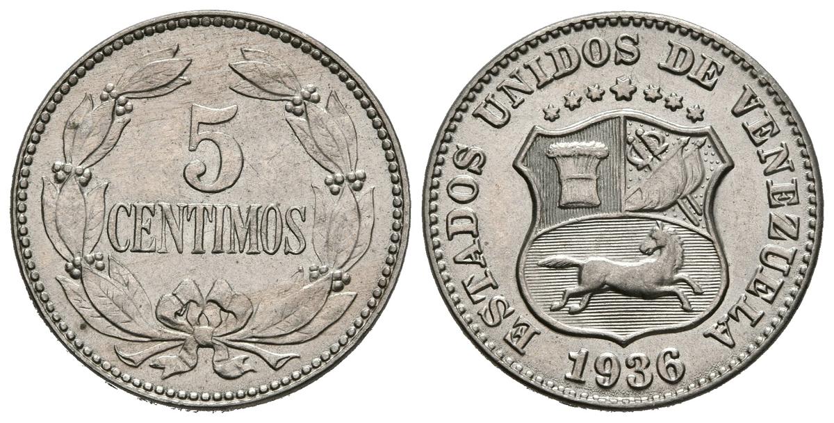 ESTADOS UNIDOS DE VENEZUELA. 5 Céntimos. (Cu-Ni. 2,60g/19mm). 1936. Philadelphia. (Km#Y27). SC.