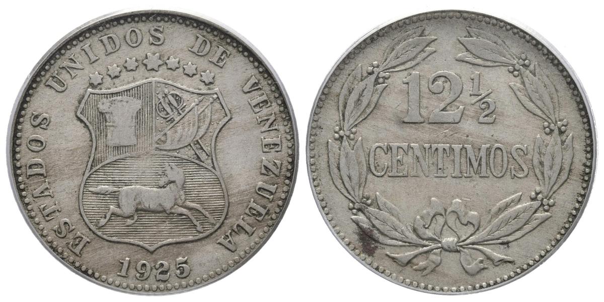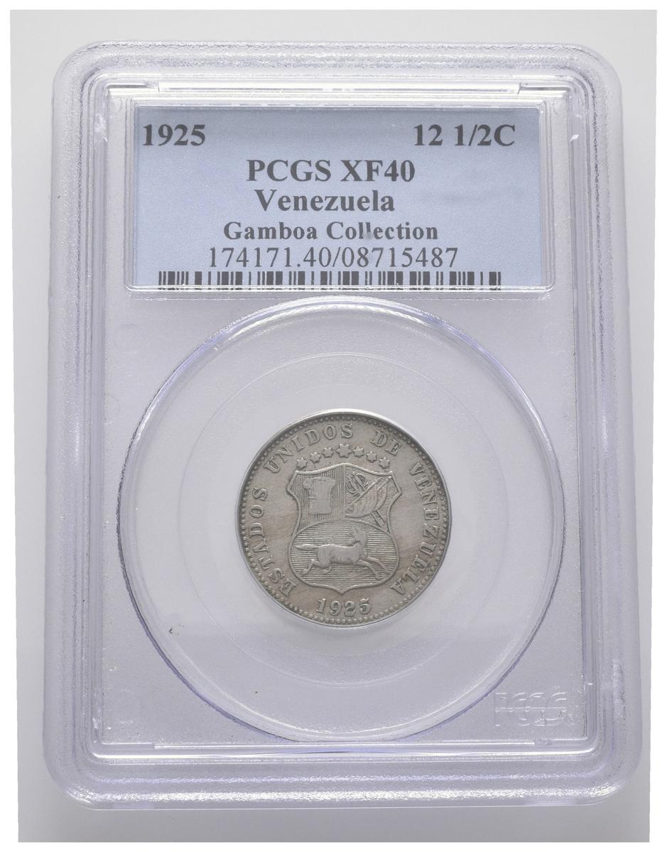 ESTADOS UNIDOS DE VENEZUELA. 12 1/2 Céntimos. (CuNi. 5,00g/23mm). 1925. (Km#Y28). Encapsulado PCGS XF-40.