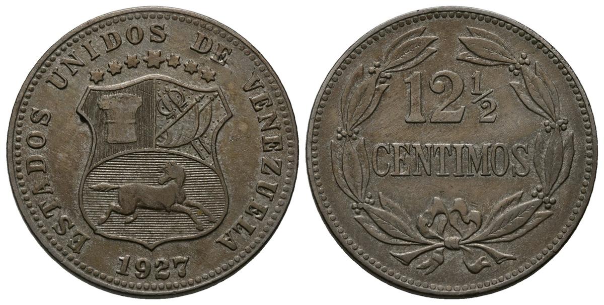 ESTADOS UNIDOS DE VENZUELA. 12 1/2 Céntimos. (CuNi. 4,99g/23mm). 1927. Philadelphia. (Km#Y28). MBC.