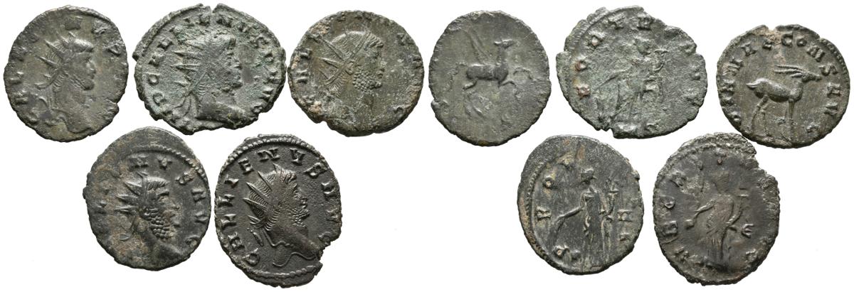 IMPERIO ROMANO. Lote compuesto por 5 Antoninianos pertenecientes al emperador Galieno. A EXAMINAR.