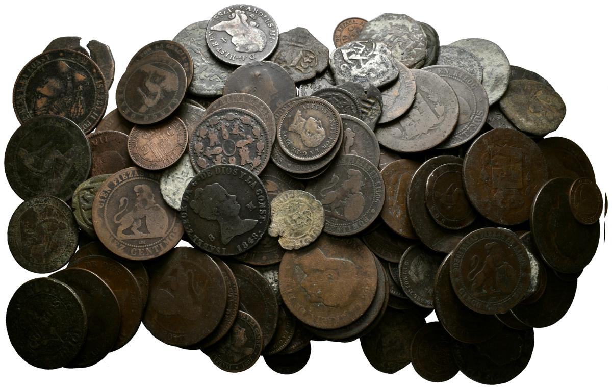 Lote compuesto por más de 200 cobres españoles incluyendo Monarquía Española y Centenario de la Peseta. Diferentes módulos, cecas y estados de conservación. A EXAMINAR.