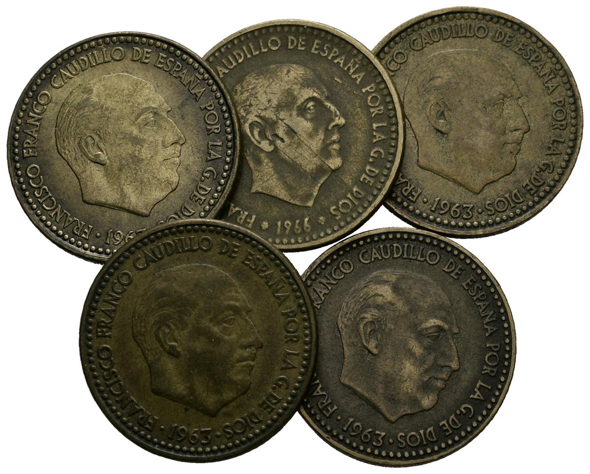 ESTADO ESPAÑOL. Lote compuesto por 5 monedas de 1 Peseta de diferentes años, estrellas y estados de conservación. A EXAMINAR.