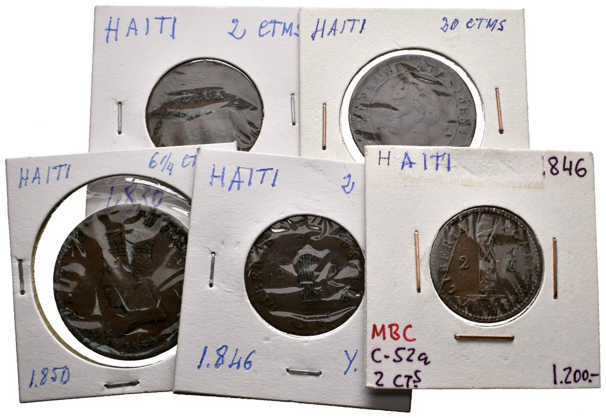 HAITI. Lote de 5 monedas del siglo XIX. Variedad de valores entre los que destaca 6 1/4 Centimes de 1850. Diferentes estados de conservación. A EXAMINAR.