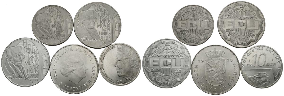 MONEDAS EXTRANJERAS. Magnífico conjunto de 5 monedasde Holanda de plata de 10 Gulden y de varios valores de ECU (2 1/2, 10 y 25). Alto grado de conservación en general. A EXAMINAR.