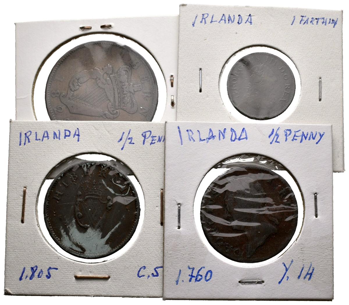 IRLANDA. Lote de 4 monedas de 1/2 Penny de 1760 y 1805, 1 Penny de 1822 y 1 Farthing de 1806. Diferentes estados de conservación. A EXAMINAR.