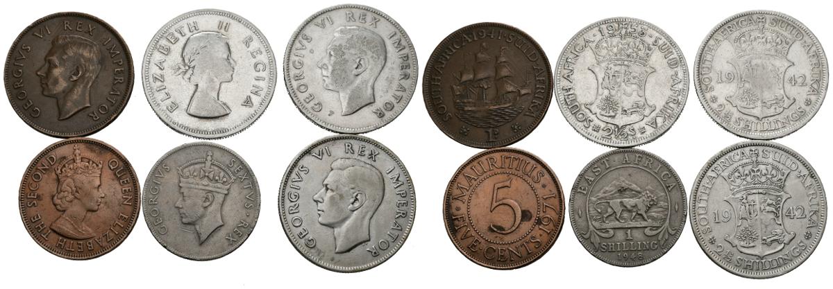 MONEDAS EXTRANJERAS. Interesante cojunto de 6 monedas pertenecientes a países de la commonwealth africanos. Diferentes modulos, materiales así como estados de conservación. A EXAMINAR.