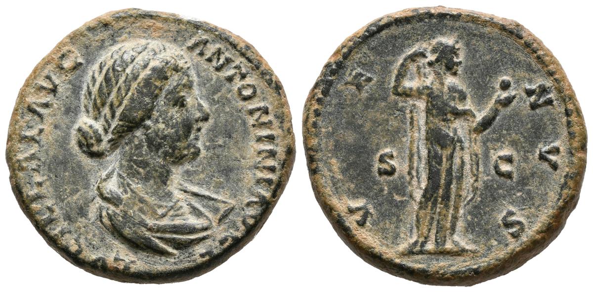 LUCILLA. As. (Ae. 11,35g/25mm). 161-162 d.C. Roma. Anv: LVCILLAE AVG ANTONINI AVG F. Busto drapeado con moño a derecha de Lucilla. Rev: VENVS. Venus estante a derecha portando globo, entre SC. (RIC 1770). MBC-.