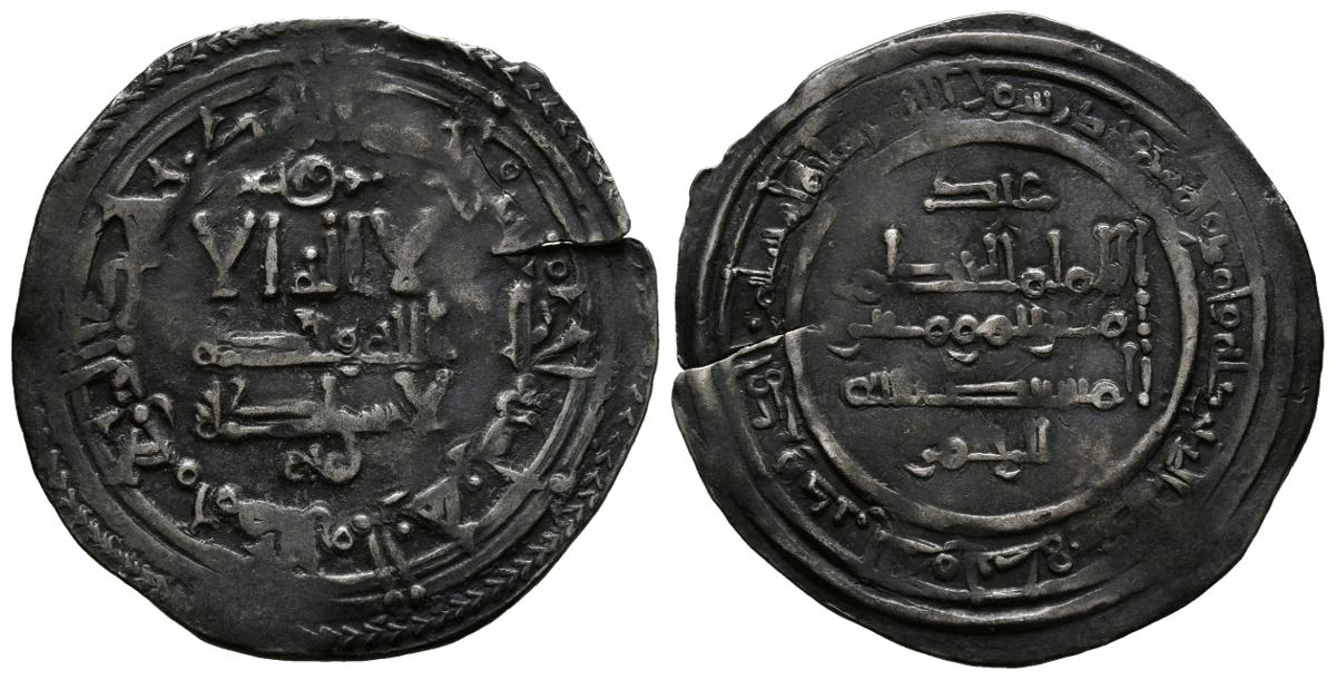 CALIFATO DE CORDOBA, Al-Hakam II. Dirham. (Ar. 2,94g/27mm). 351H. Madinat al-Zahra. (Vives 449). Con Abd al-Rahman en IIA. MBC. Grieta.