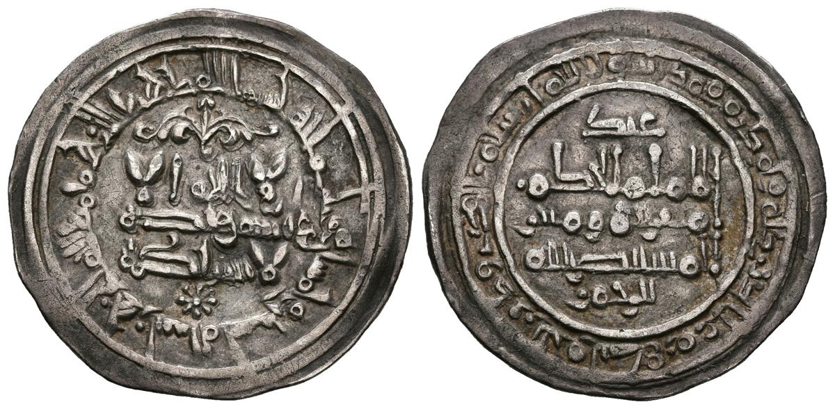CALIFATO DE CORDOBA. Al-Hakam II al-Mustansir. Dirham. (Ar. 2,48g/24mm). 352H. Madinat al-Zahra. (Vives 450; Frochoso 352.79d). Citando a Abd al-Rahman en II.A. MBC+.