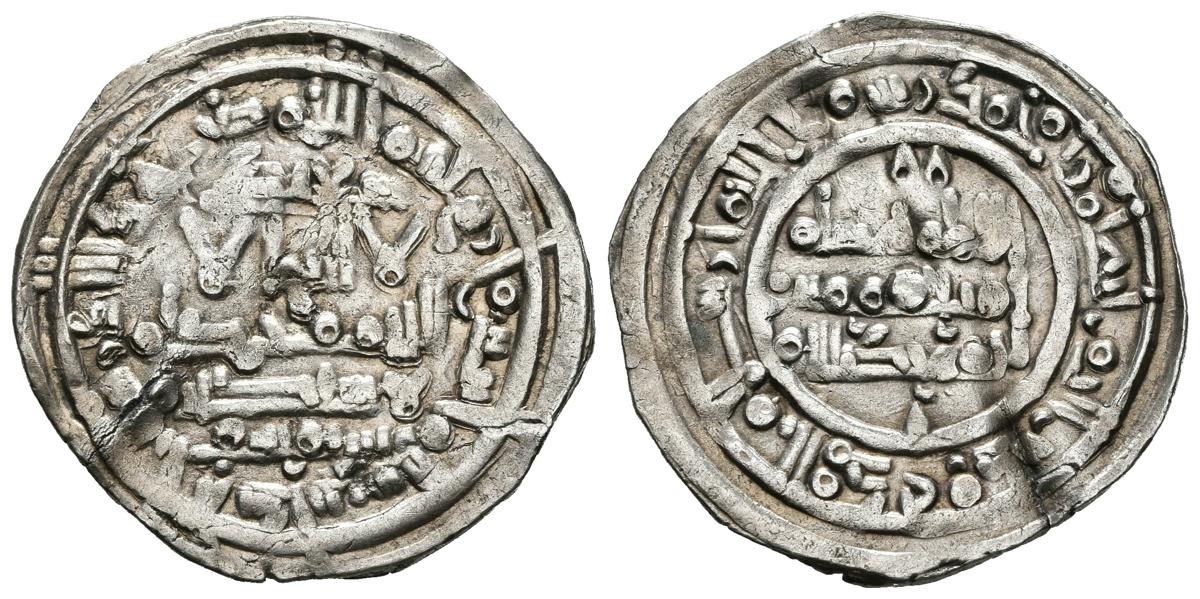 CALIFATO DE CORDOBA. Hisham II al-Muayyad. Dirham. (Ar. 2,19g/24mm). 402H. Al-Andalus. (Vives 703; Frochoso 402.35d). Citando a Said Ibn Yusuf en I.A. MBC+. Doblez enderezada.
