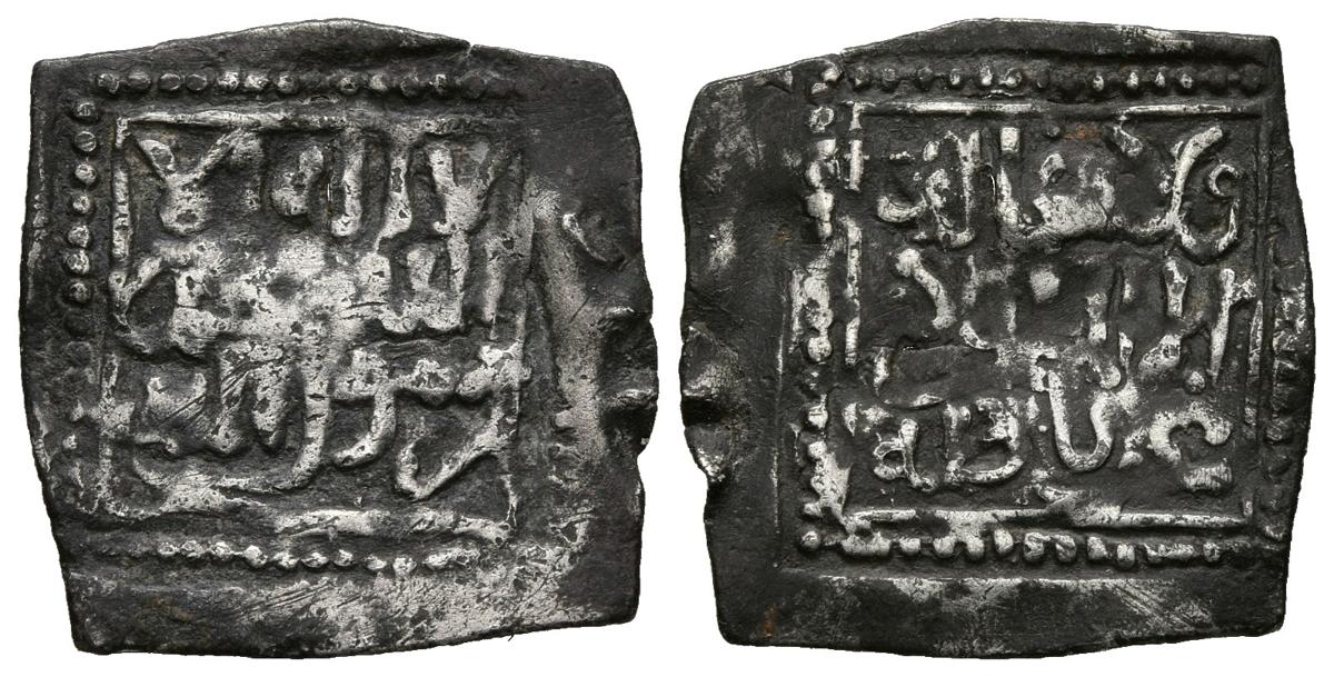 NAZARIES DE GRANADA. 1/2 Dirham. (Ar. 0,76g/17mm). Anónimo. Gharnata (Granada). (Vives 2193; Lorente 60). MBC. Ejemplar reacuñado sobre otra pieza anterior.