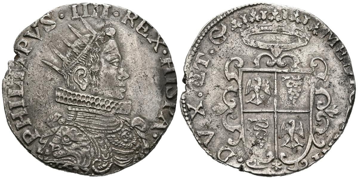 FELIPE IV (1621-1665). Ducatón. (Ar. 31,86g/42mm). 1622. Milán. (MIR 361/1; Vicenti 19). MBC+. Bonito y escaso ejemplar.