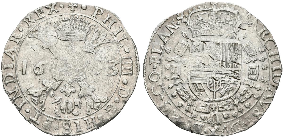 FELIPE IV (1621-1665). 1 Patagón. (Ar. 27,99/42mm). 1653. Brujas. (Vicenti 1080). MBC+/MBC.