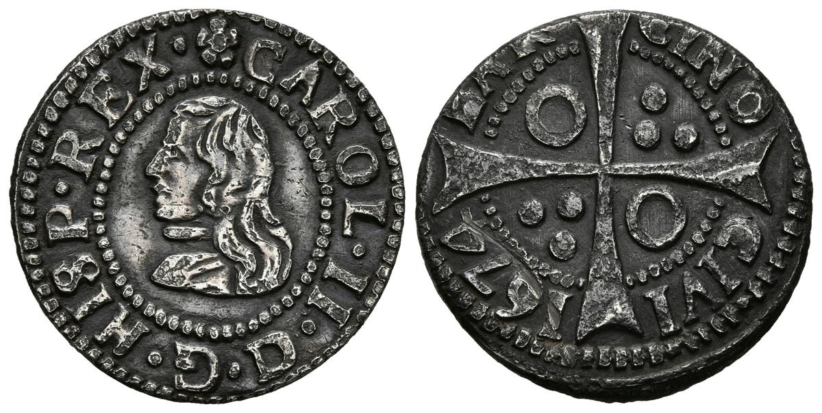 CARLOS II (1665-1700). 1 Croat. (Ar. 2,70g/21mm). 1674. Barcelona. (Cal-2019-202). MBC+. Bonito tono.