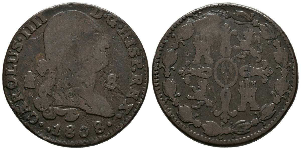 CARLOS IV (1788-1808). 8 Maravedís (Ae. 11,27g/30mm). 1808. Segovia. (Cal-2019-86). BC+.