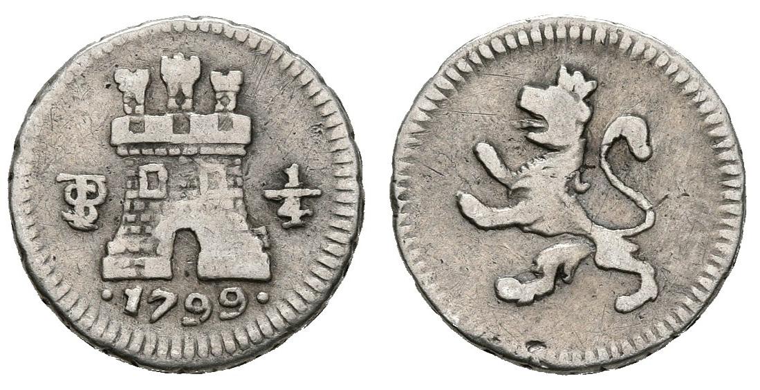 CARLOS IV (17888-1808). 1/4 de Real. (Ar. 0,83g/12mm). 1799. Potosí. (Cal-2019-147). MBC.