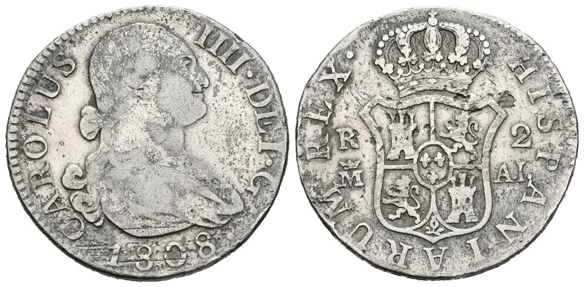 CARLOS IV (1788-1808). 2 Reales. (Ar. 5,66g/26mm). 1808. Madrid. AI. (Cal-2019-619). BC+.