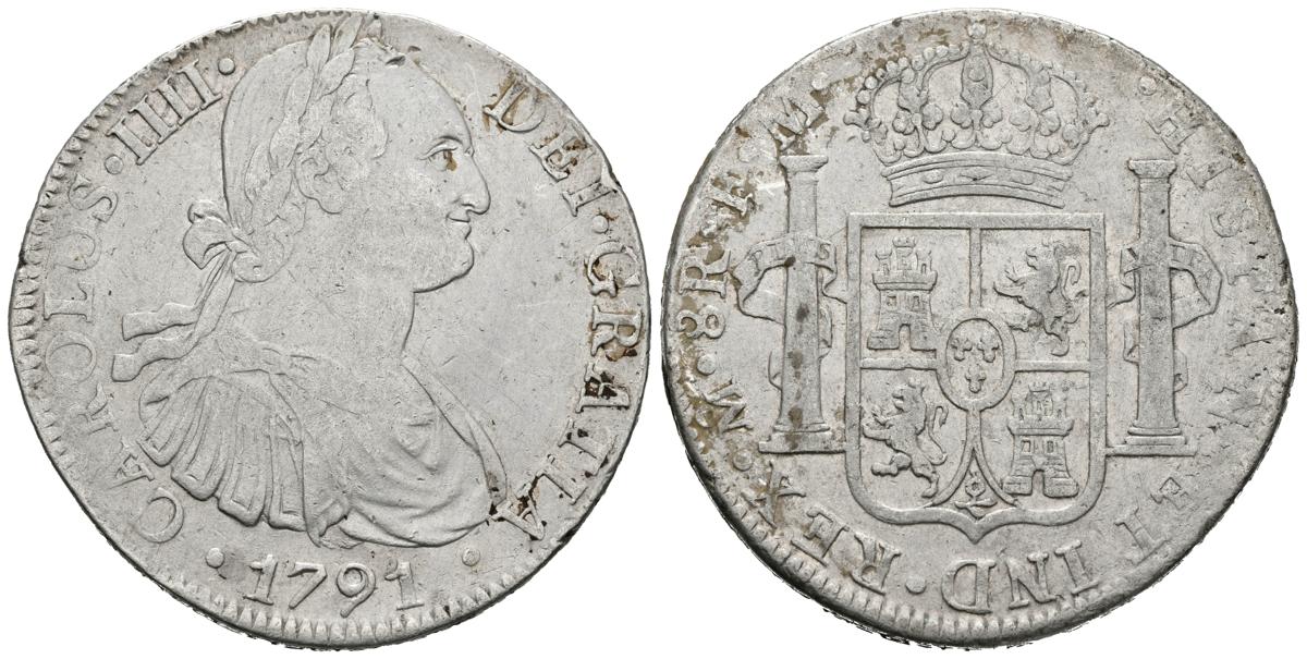 CARLOS IV (1788-1808). 8 Reales (Ar. 26,63g/38mm). 1791. México. FM. (Cal-2019-953). MBC. Limpiada.