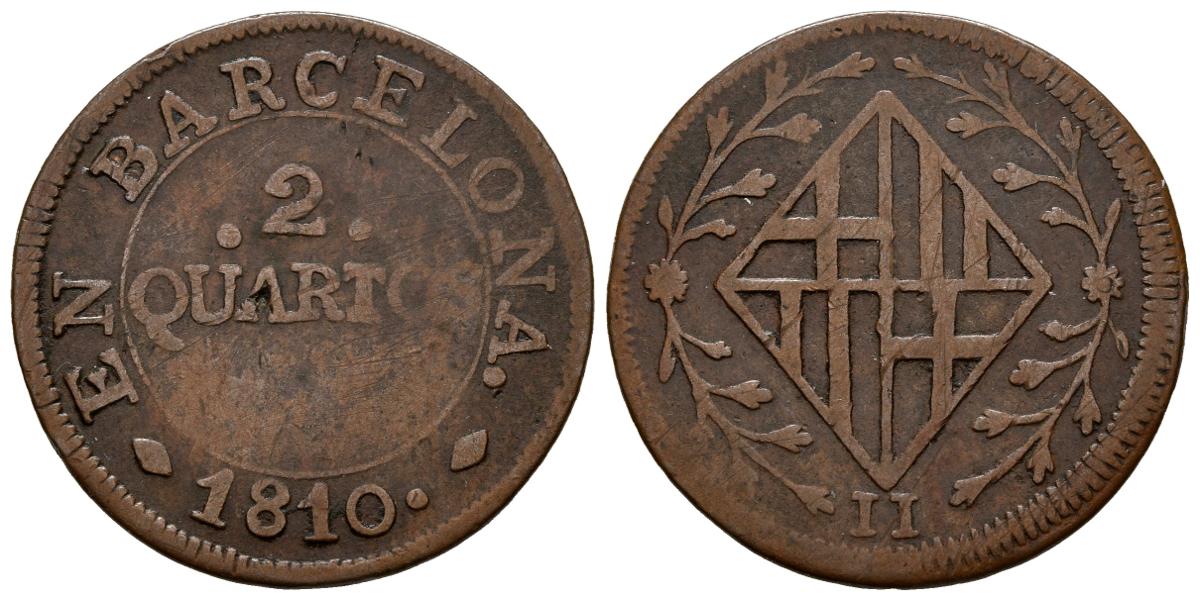CATALUÑA NAPOLEÓNICA (1808-1814). 2 Cuartos. (Ae. 4,08g/25mm). 1810. Barcelona. (Cal-2019-11). BC+. Escasa.