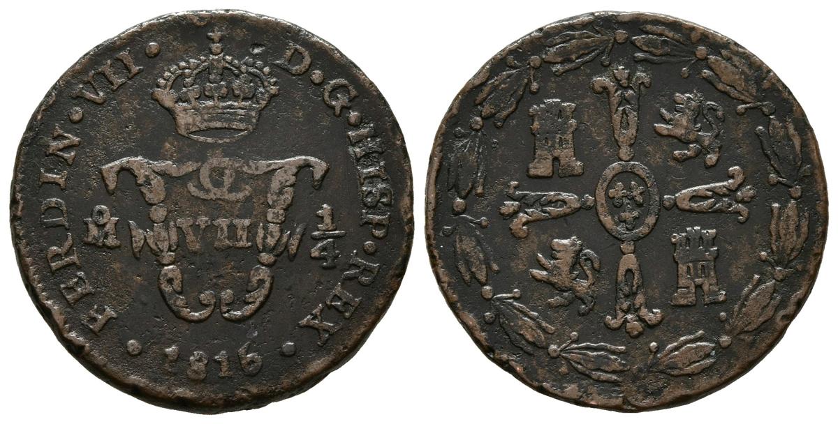 FERNANDO VII (1808-1833). 1/4 de Tlaco ó 1/2 Real. (Ae. 3,52g/21mm). 1815. México. (Cal-2019-108). MBC. Rara.