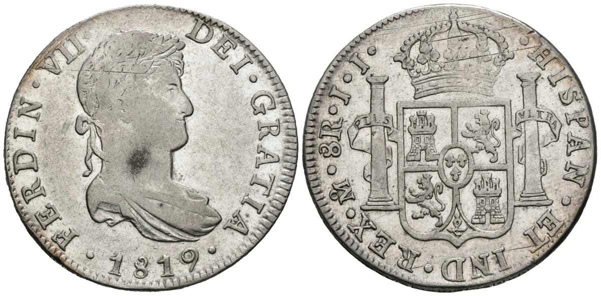 FERNANDO VII (1808-1833). 8 Reales. (Ar. 26,92g/39mm). 1819. México JJ. (Cal-2019-1334). MBC/MBC+.