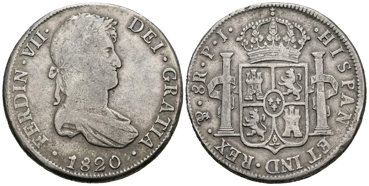 FERNANDO VII (1808-1833). 8 Reales. (Ar. 26,73/38mm). 1820. Potosí PJ. (Cal-2019-1384). MBC-.